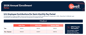 You will pay between $100 and $600 less for medical coverage in 2026 if you earned bWell rewards by August 31, 2025, and chose medical premium discounts. You’ll see the earned discounts on mybmcrewards.com after you click on Make Your Annual Enrollment Choices.